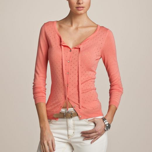 Оцените «Кардиган женский из ажурного трикотажа с завязками, 3Suisses»: