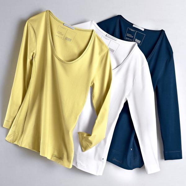 Стильная женска кофта. Женственный, круглый вырез. Рукава модной длины 3/4. С эффектными ребристыми вставками по бокам. Из мягкого и комфортного джерси. Длина около 62 см. Из 94% хлопка и 6% эластана.
