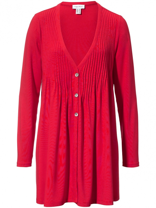 Стильная женская кофта с длинными рукавами. С тремя пуговицами застежки. Обыгрывающий фигуру крой. Треугольный вырез. Длина размера 42 ок. 78 см. 95% вискоза, 5% эластан.