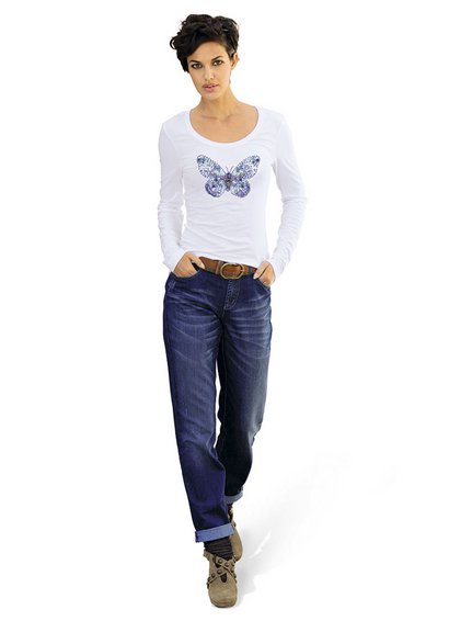 Модные джинсы в стиле "бойфренд", покрой с 5 карманами, умеренного выполнения. Роскошная стирка делает каждые джинсы уникальными! Немного низкая высота сиденья с заниженным шаговым швом. Красиво обыгрывающий фигуру покрой. Длина по шаговому шву ок. 80,5 см. Ширина по низу ок. 36 см. 77% хлопка, 22% полиэстера, 1% эластана. Машинная стирка.